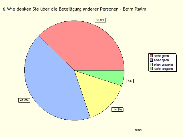 Sie finden hier alle Grafiken mit den Auswertungen zu den Fragen des Fragebogens zu den Gottesdiensten in unserer Kirchengemeinde und ihre Anmerkungen, Kritikpunkten und Anregungen.
